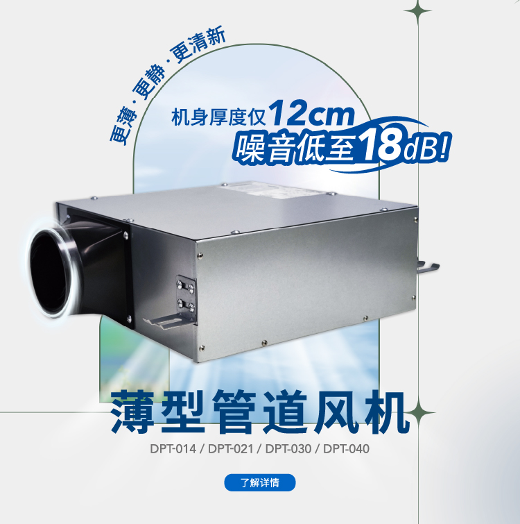采用優(yōu)質隔音材料,噪音低至18dB(DPT-014低檔)